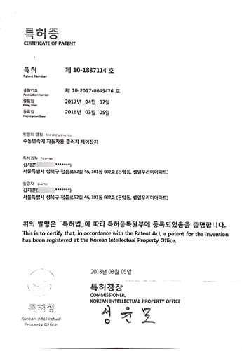 Utility Model Registration No. 0319147 – Clutch Control Device for Manual Transmission Vehicles