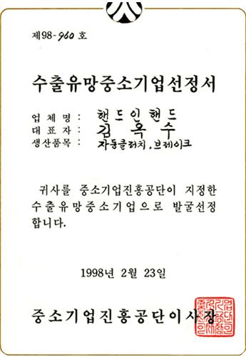 Commendation from the Small and Medium Business Cooperative