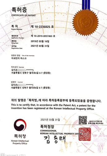 Patent No. 10-2236825